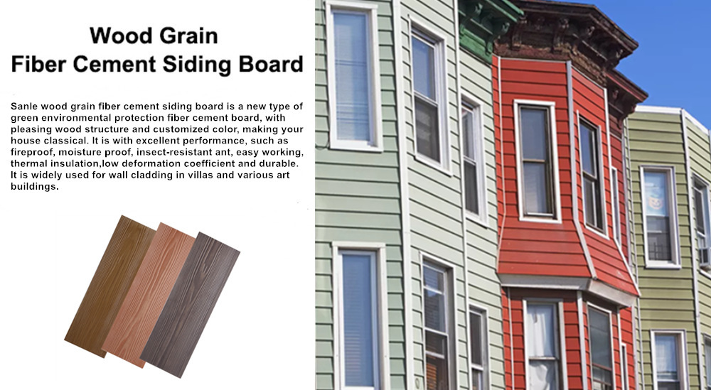 Фиброцементные сайдинговые плиты Sanle с текстурой дерева — это разновидность искусственных фиброцементных плит. Они придают вашему дому классический и элегантный вид, сохраняя его привлекательный облик на долгие годы. Существует четыре основных варианта рисунка: южная сосна, северная сосна, рисунок ясеня и рисунок восточной пихты.